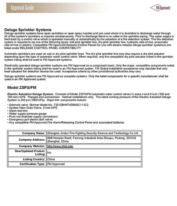 This certificate showing that Shanghai Jindun deluge vavles get the FM approval